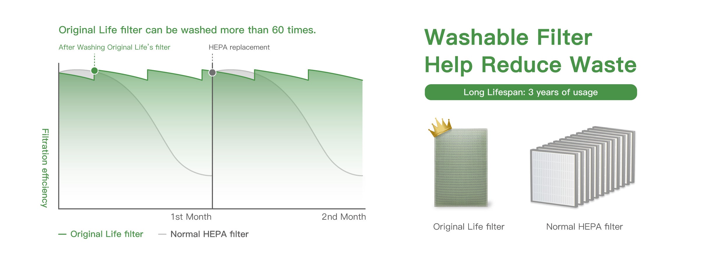 The Original Life filter can filter out ultra-fine particles such as dust, lint, pet hair and dander, and also eliminate VOCs and other odors.